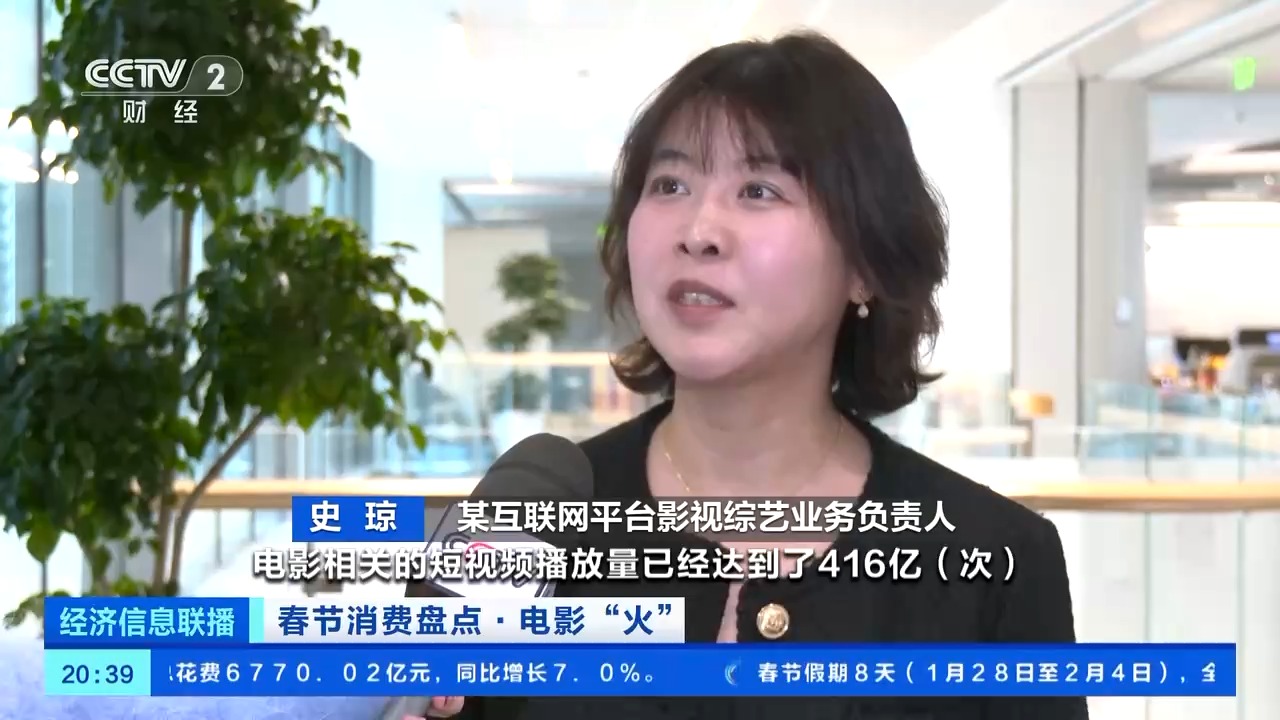 *某互聯網平台影視綜藝業務負責人 史瓊:*電影相關的短視頻播放量已經達到了416億次,普通用户基於電影觀看反饋的投稿量和播放量相比去年增長了100%,我們平台上還有一款官方授權的盲盒周邊,已經賣了26萬份。