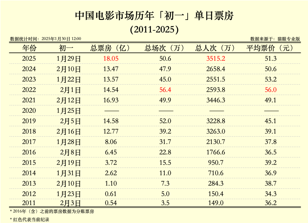 1月29日,大年初一以18.05億元的票房為蛇年電影市場帶來了“開門紅”。正月初一至初七是影史票房最高的一週,連續7天單日票房均維持在12億元以上,同樣創造了影史紀錄。