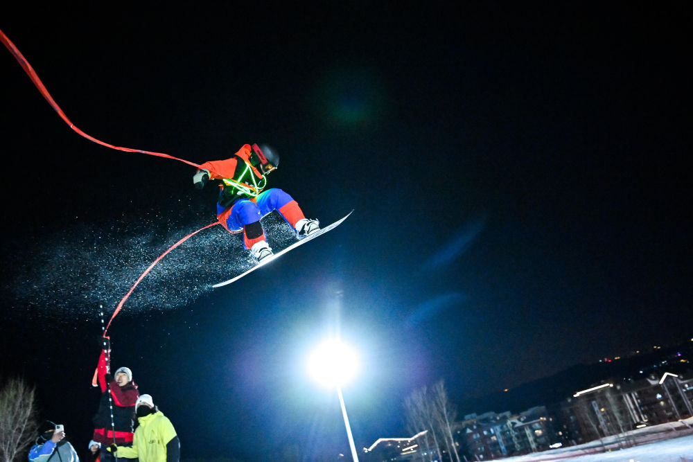 滑雪愛好者在進行滑雪趣味跳高賽 顏麟藴 攝