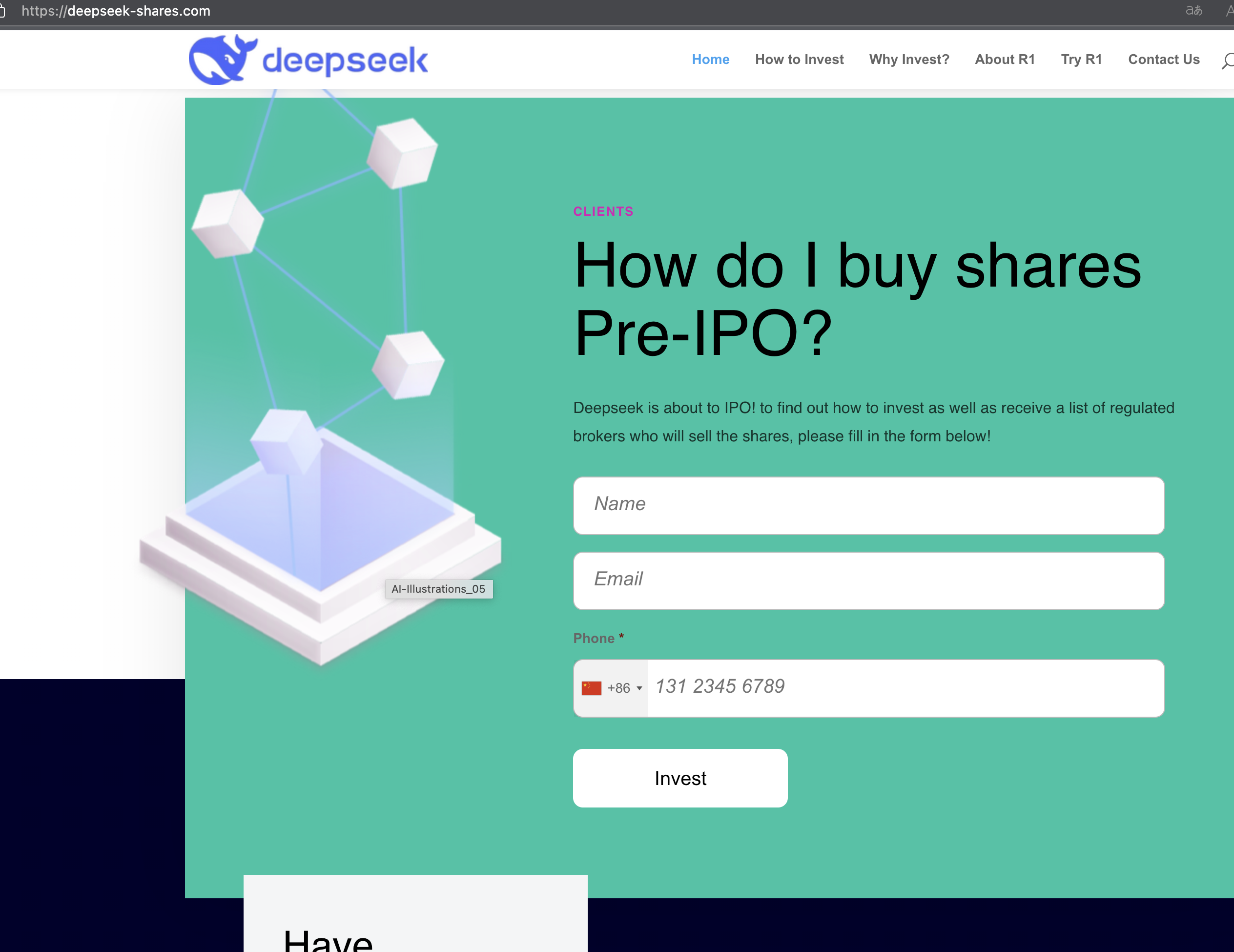 此外,所謂“DeepSeek 加持”的空氣幣(無實質價值的虛擬貨幣)也被推出,甚至出現宣稱可以購買DeepSeek內部原始股的網站。奇安信XLab 實驗室稱,這種模式與過往許多科技爆款(如 ChatGPT)在爆火後迅速出現大量仿冒和詐騙的趨勢高度相似,也可能給用户帶來大額財產損失。