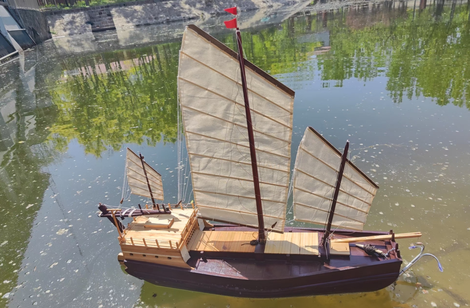 翟俊正的船模在水中航行(央廣網發 受訪者供圖)
