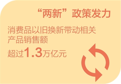 商務部新聞發言人何詠前:中央經濟工作會議提出,大力提振消費。初步統計,2024年,全國汽車以舊換新超過680萬輛,超3600萬名消費者購買8大類家電以舊換新產品超過5600萬台,家裝廚衞“煥新”補貼產品約6000萬件,電動自行車以舊換新超過138萬輛。消費品以舊換新帶動相關產品銷售額超過1.3萬億元。
