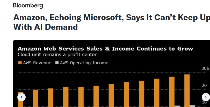 外媒:亞馬遜警告雲計算部門面臨產能限制,人工智能需求難以滿足