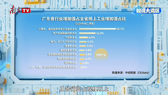 從各行業佔規模以上工業增加值的比重來看,廣東的工業產業體系有三股強大支柱:傳統產業、新興產業、未來產業。