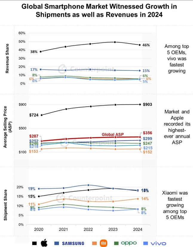 2024年全球智能手機收入增長,平均售價創歷史新高