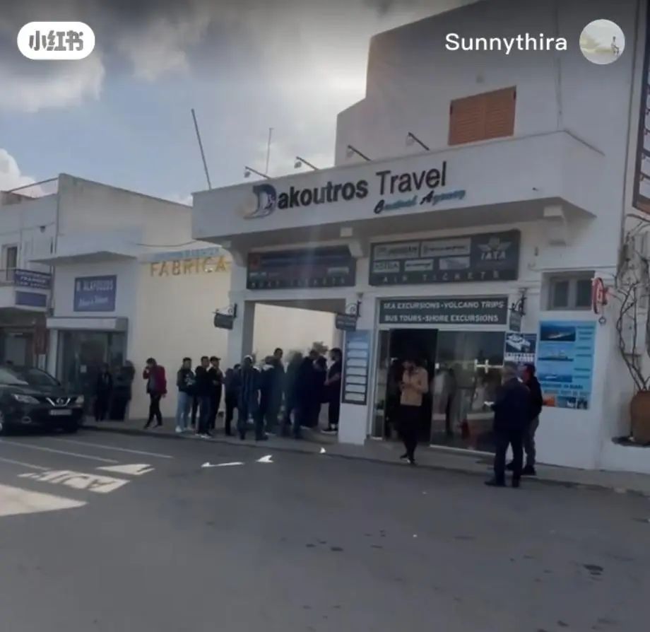 孫先生在北京時間2月5日凌晨1點在社交平台分享了當地島民撤離的視頻,視頻中可以看到聖托里尼當地旅遊公司Dakoutros Travel的門口,撤離的人羣排起了長隊。隨後他2月5日下午4點50分更新的視頻內容,則是當地空無一人的街區。