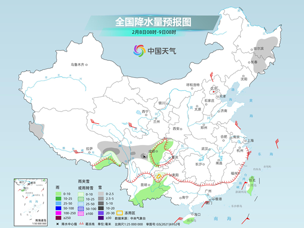 今天(2月8日),全國雨雪將有所減少,主要出現在四川、貴州、雲南、西藏等地,中東部大部多晴朗乾燥天氣。隨着寒潮繼續南下,降温區域也進一步南壓,江南不少地方最高氣温將創今冬以來新低。