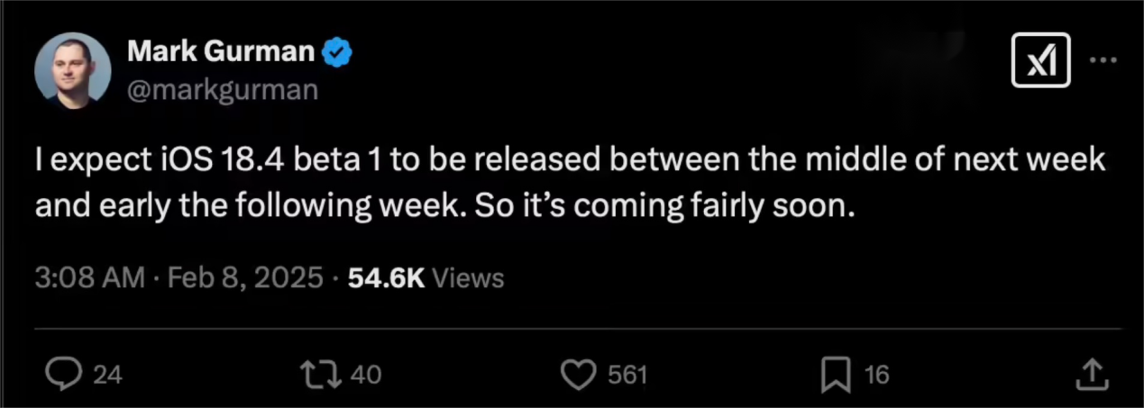 【環球網科技綜合報道】2月8日,據彭博社知名記者馬克·古爾曼(Mark Gurman)透露,蘋果公司計劃在下週推出 iOS 18.4 的首個開發者測試版本。這一消息迅速引起了科技界的廣泛關注,尤其是考慮到此次更新將帶來Siri的重大改進和Apple智能功能的多語言支持擴展。