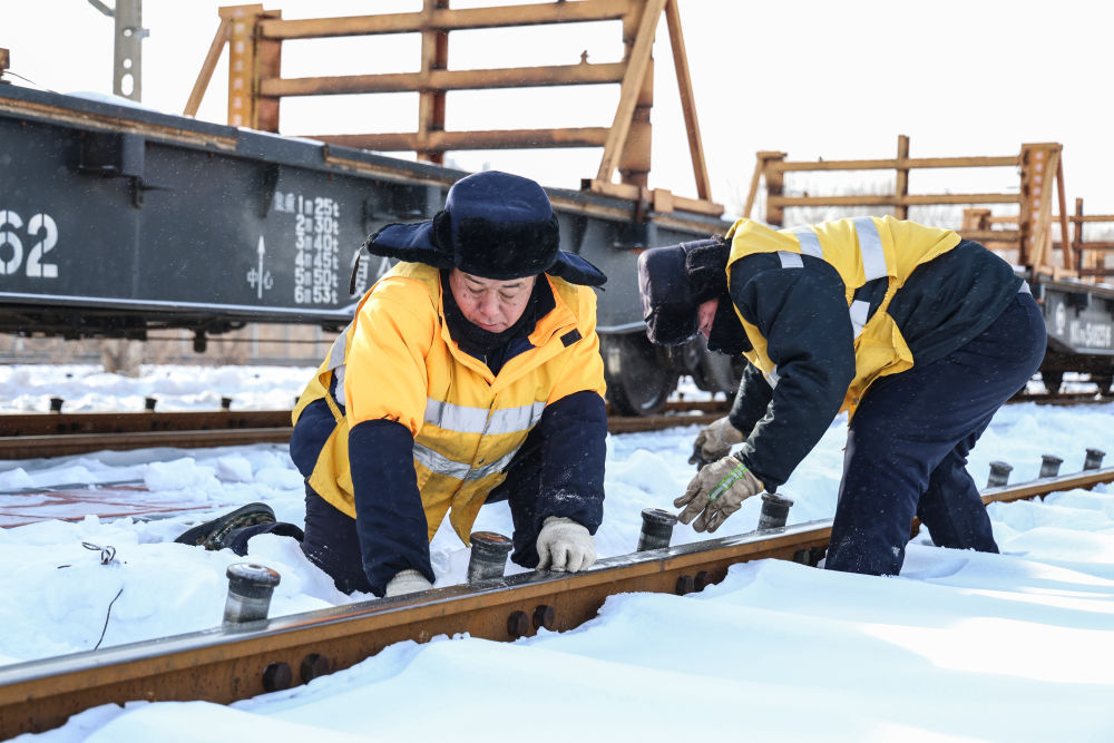 新華社瀋陽2月7日電(記者丁非白、洪可潤)2月7日早晨,瀋陽室外氣温接近零下20攝氏度。伴隨着對講機裏傳來調度命令,鐵道邊的減速頂維修工趙軼一行3人快速上道,利用短暫的調車作業暫停時間對編組場內的減速頂展開檢修。