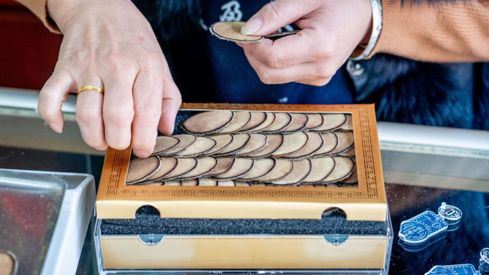 吉林省遼源市一鹿產品店內,工作人員正在分裝鹿茸片禮盒。(1月17日攝)新華社記者 唐成卓 攝