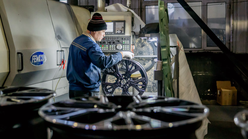 在吉林萬豐奧威汽輪有限公司車間裏,機械手揮舞,壓鑄聲轟鳴,經過熔鍊、加工、塗裝等工序,一個個嶄新的汽車輪轂被打包整齊裝上貨車,發往全國各地。