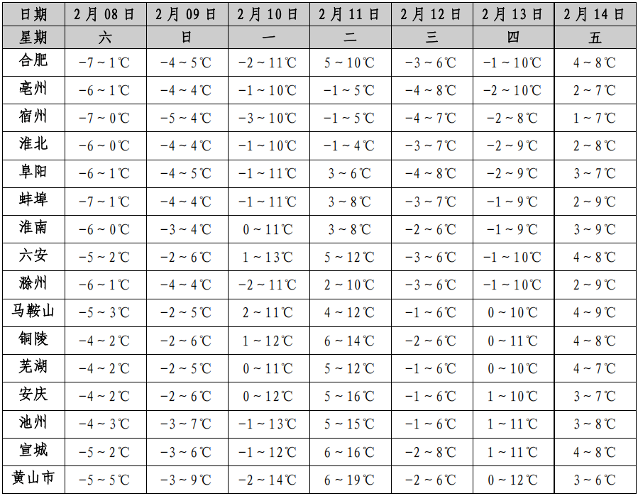 安徽省氣象台也於2月8日10時解除寒潮藍色預警!
