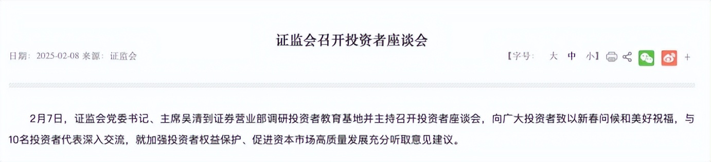 吳清在座談會上強調,投資者是市場之本,保護投資者合法權益是證券監管的首要任務。證監會將堅持問需於市場、問計於市場、問道於市場,牢牢把握中小投資者佔絕大多數的基本市情,持續加強與各類投資者溝通,及時回應投資者關切。