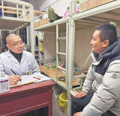 2月8日晚,在筠連縣第二中學校安置點,筠連縣中醫院的醫生正在瞭解安置羣眾身體情況。本報記者 宋豪新攝