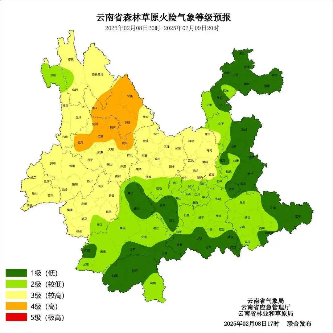 預計,麗江市大部、大理州北部4級,怒江州中部和南部、迪慶州、麗江市東南部、大理州中部和南部、保山市、德宏州、臨滄市大部、楚雄州中部和北部、昆明市中部和北部3級,其他地區1~2級。