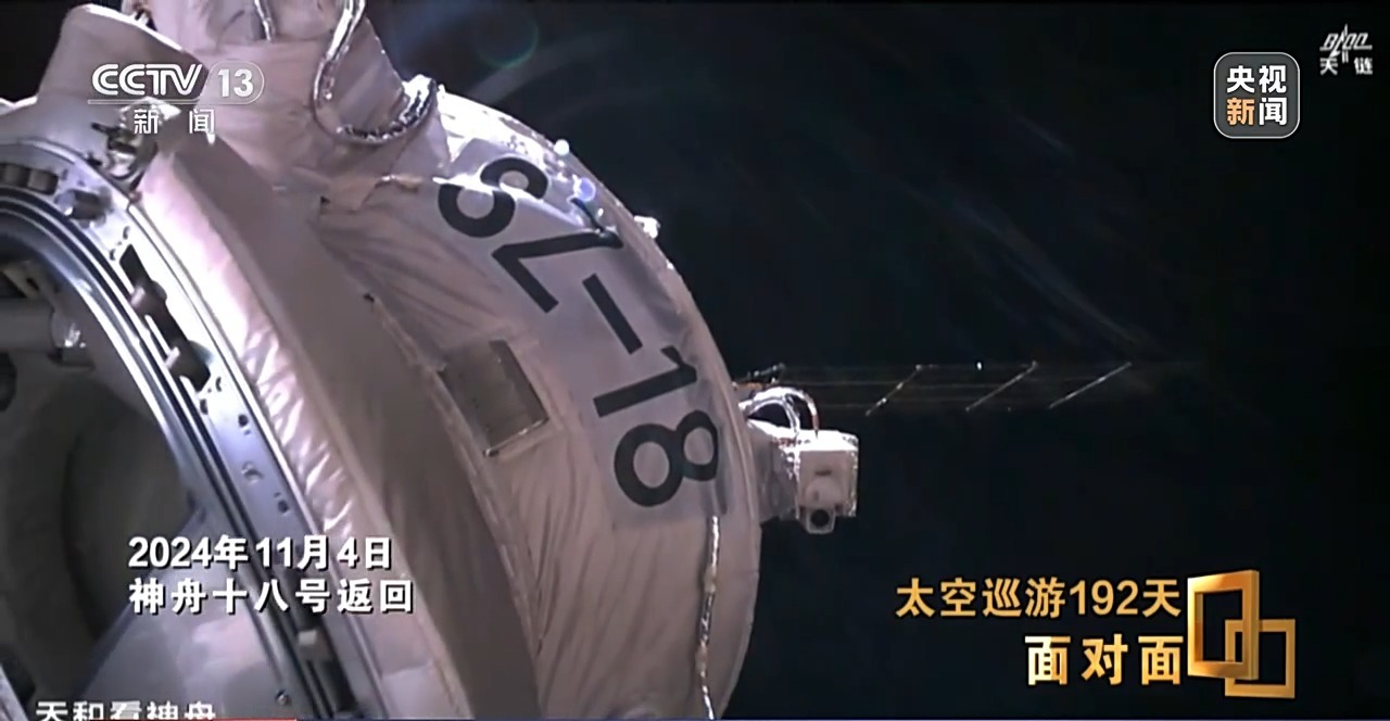 2024年10月30日,神舟十九號航天員蔡旭哲、宋令東、王浩澤順利進駐中國空間站,與神舟十八號乘組完成中國航天史上第5次“太空會師”。相聚5天后,2024年11月3日,神舟十八號乘組與隊友告別,啓程返回地球。