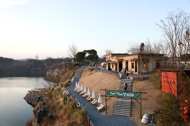 走進老礦坑,一汪幽深湛藍的心形湖水,是“深藍計劃”的獨特風景。這間由300畝廢棄礦坑改造的咖啡店,一年接待遊客60餘萬人次。100多人的運營團隊,基本都是大學生。