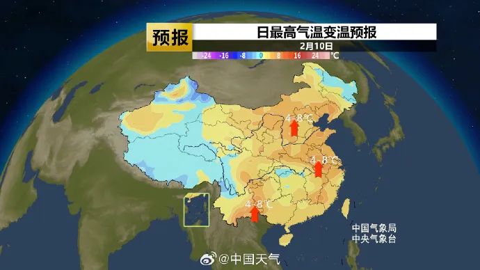 明天我國大部升温持續,11日至13日,又會有冷空氣影響中東部地區。降水方面,明天中東部大部雨雪稀少,後天降水發展增多,東北等地部分地區有降雪,黃淮、江淮、江南、華南等地也將有弱降水出沒。