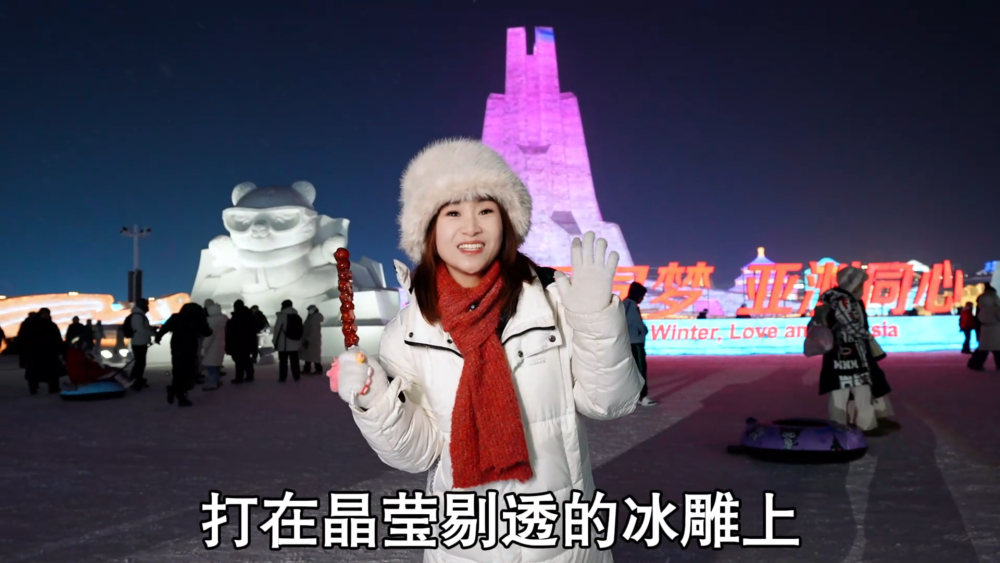 當夜晚璀璨的燈光打在晶瑩剔透的冰雕上,狂歡的氣氛馬上就要來了。雖然氣温低至零下三十度,來自東北的熱情還是讓你嗨不夠!