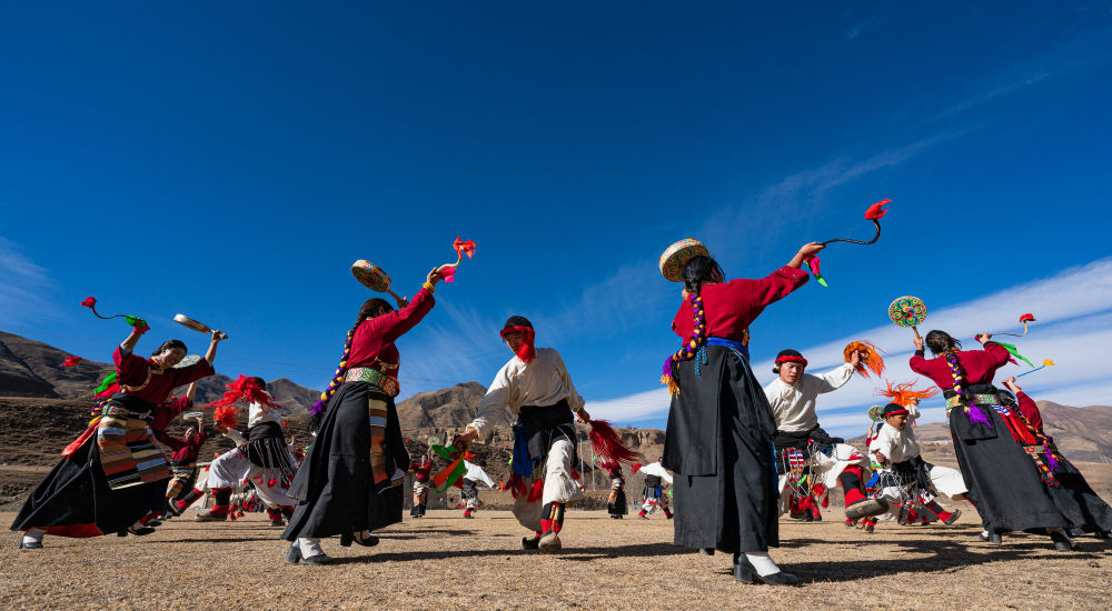 這一傳承了千年的藏族傳統舞蹈是一種鼓舞,也是一種融説、唱、舞、雜技為一體的綜合性表演藝術。與悠揚舒緩的鍋莊舞不同,熱巴舞的騰躍、旋轉動作極具視覺衝擊力,鼓鈸的鏗鏘聲中盡顯高原兒女的豪情壯志。每逢藏曆新年或豐收慶典,熱巴舞都是最隆重的文化盛宴,深受當地羣眾喜愛。