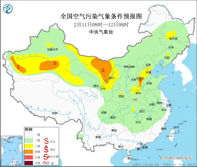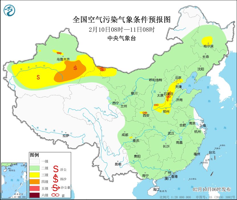 10日至11日,新疆南部和東部、甘肅中西部、內蒙古西部、寧夏、陝西北部等地的部分地區有揚沙或浮塵天氣。此外,10日至11日,華北中南部大氣擴散條件一般,部分地區有輕度霾,局地有中度霾。