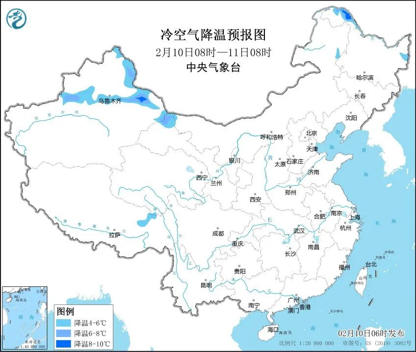 1月10日,冷空氣將進入新疆北部,11日至12日,影響中東部大部地區。受冷空氣影響,長江中下游及其以北地區有4至6級偏北風,中東部地區氣温下降4℃至6℃,部分地區8℃,局地降温幅度10℃左右。