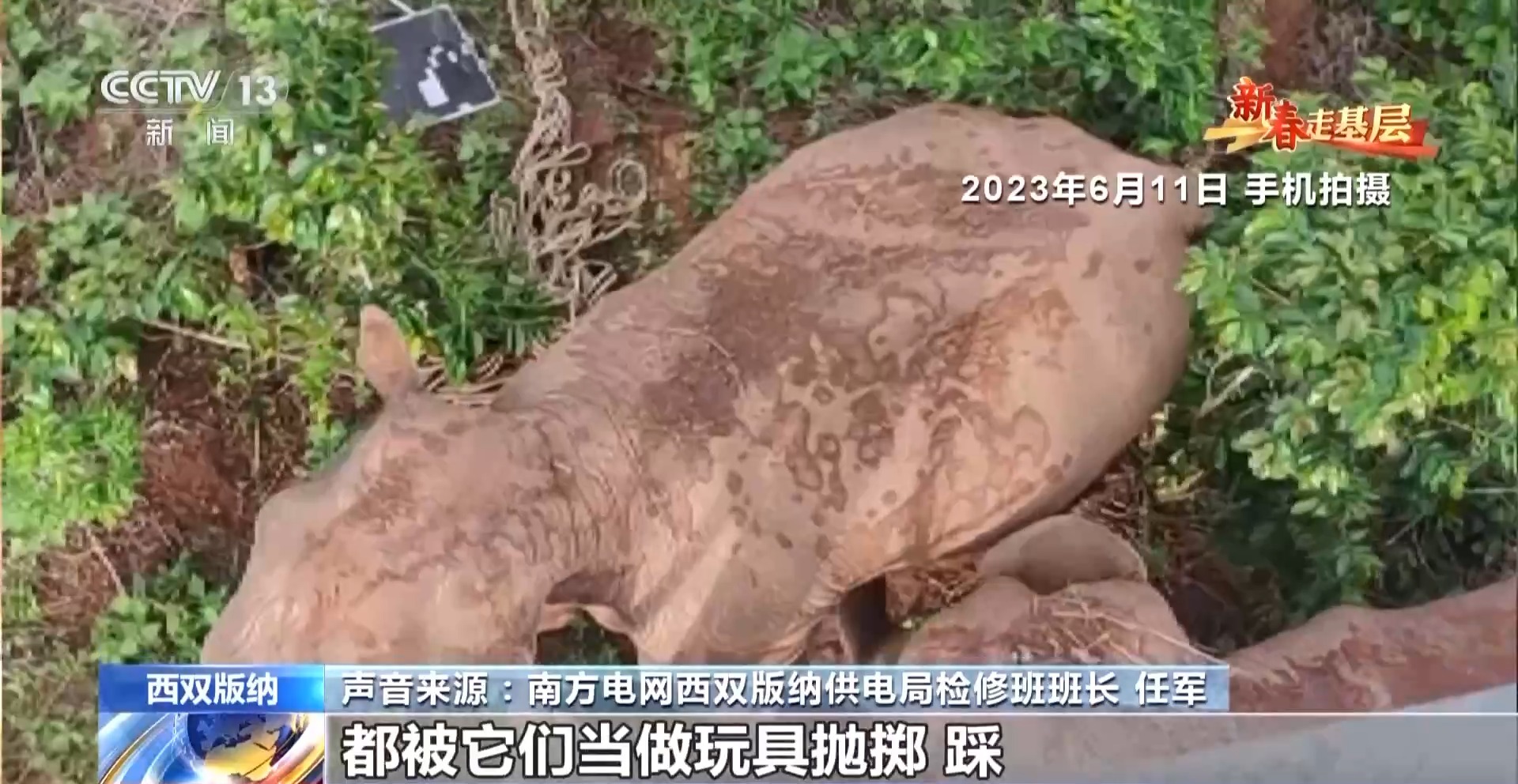 *南方電網西雙版納供電局檢修班班長 任軍:*破壞力還是較大的,我們自己帶的那些設備、工器具,都被它們當作玩具拋擲、踩。儘量能少遇到是最好的,但是遇到了,我們就要避險,爬到塔上去。