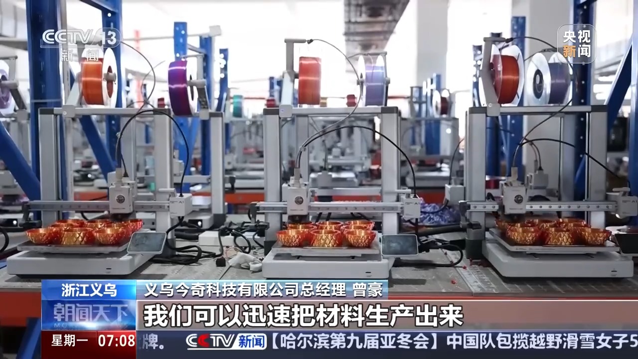*義烏今奇科技有限公司總經理 曾豪:*我們所有3D打印的原材料都是由這邊的機器生產的,從原材料、注塑的盤,包括紙箱的紙板都是在我們園區裏面。整個產業鏈都在中國,這很重要,我們可以迅速把材料生產出來,然後變成玩具直接供到海外,這個是我們最大的優勢。