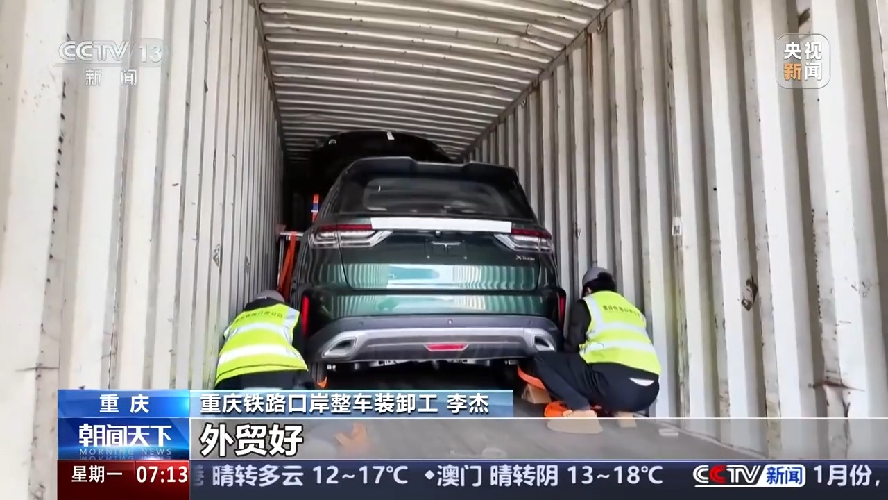 在重慶鐵路口岸,一批“重慶造”汽車正有序裝箱,即將搭乘中歐班列出口歐洲。