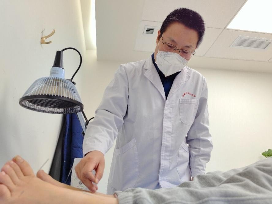 山東省濟南市中心醫院針灸推拿科副主任醫師吳清波正為患者做針灸治療。受訪者供圖