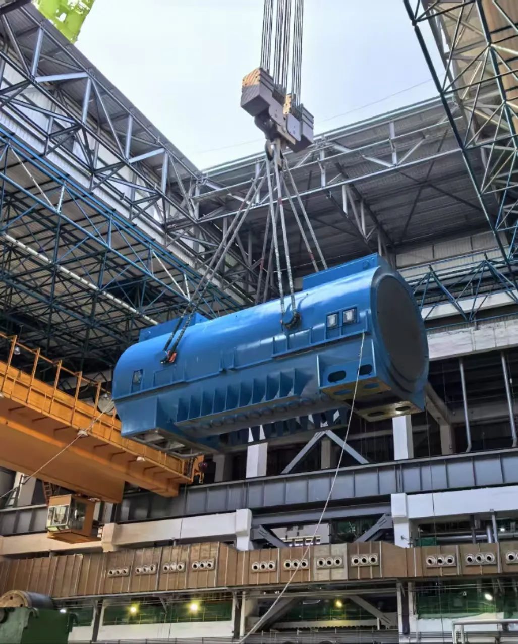 記者從中國核能電力股份有限公司獲悉:2月9日下午,中國核電旗下秦山核電的秦山第二核電廠在217大修中首次採用廠房開頂吊裝方式,將秦二廠2號機組發電機定子成功更換就位,這也是全國核電廠中第一次更換髮電機定子,為後續該機組提升功率打下堅實基礎。
