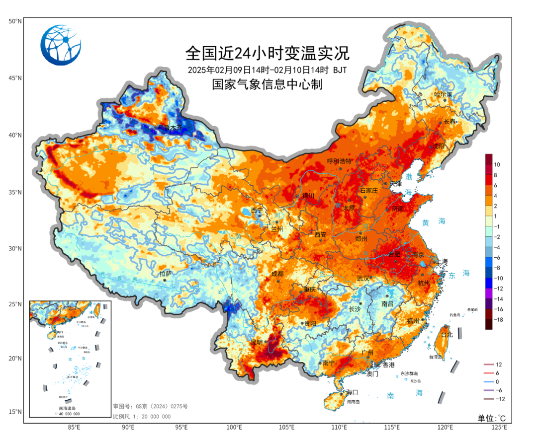 中央氣象台預計,2月11日至12日,受冷空氣影響,長江中下游及其以北地區將有4至6級偏北風,陣風7至8級,中東部地區氣温下降4至8℃,局地降温幅度10℃左右,各地氣温將再度降至較常年同期偏低水平。
