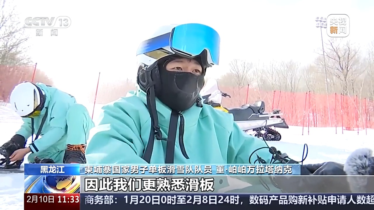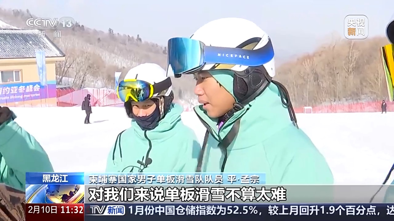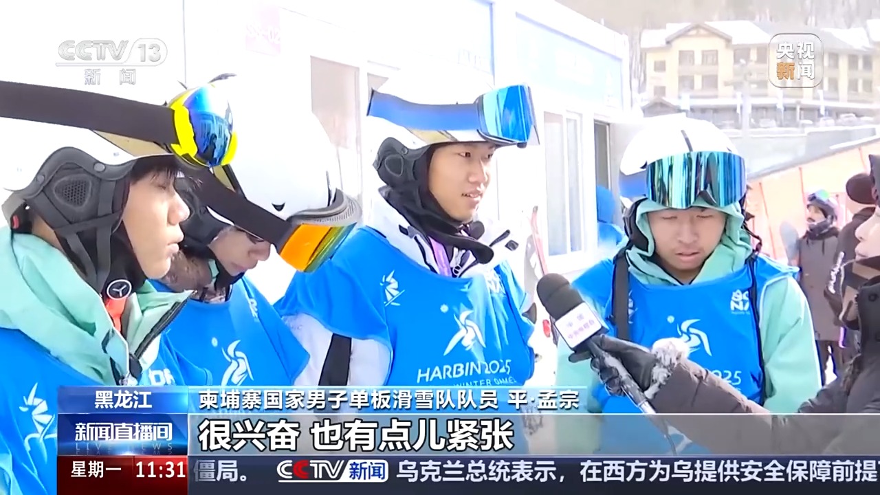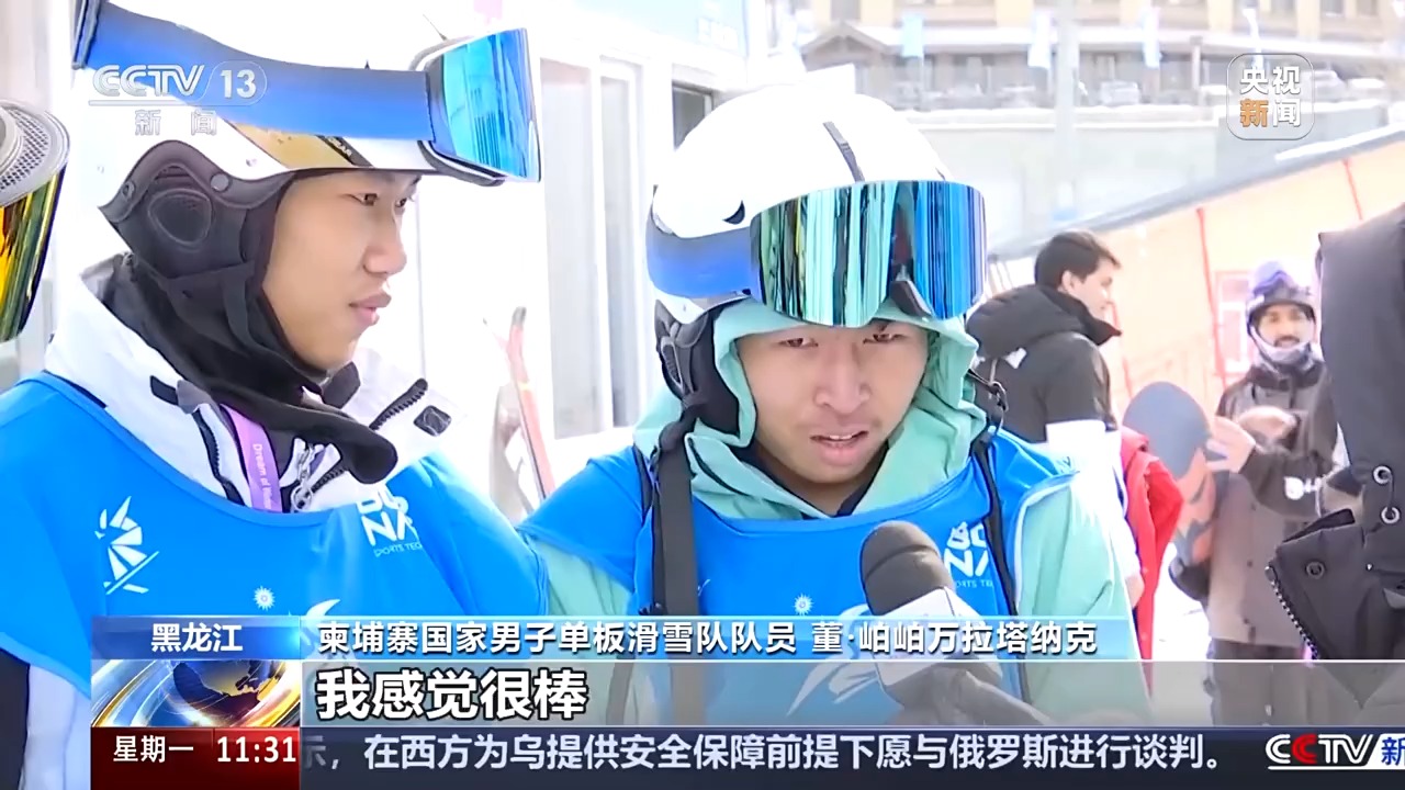 *柬埔寨國家男子單板滑雪隊隊員 平·孟宗:*很興奮,也有點兒緊張,因為這是我們第一次完成像亞冬會這樣的大型賽事。