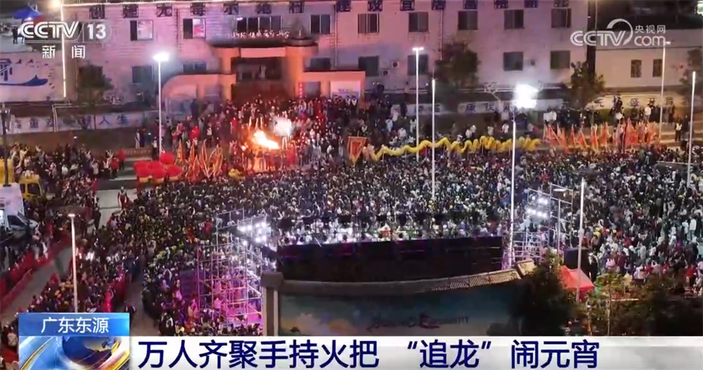在廣東東源縣新輪村,一場“追龍”活動在元宵節前盛大舉行。煙花綻放,爆竹齊鳴,數萬名村民、遊客手持火把,跟隨着舞動的百米金龍在鄉間穿梭遊走,遠遠望去,宛如千米火龍在鄉間蜿蜒遊走,場面十分壯觀。