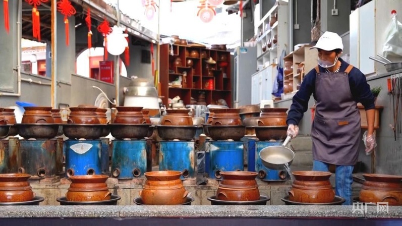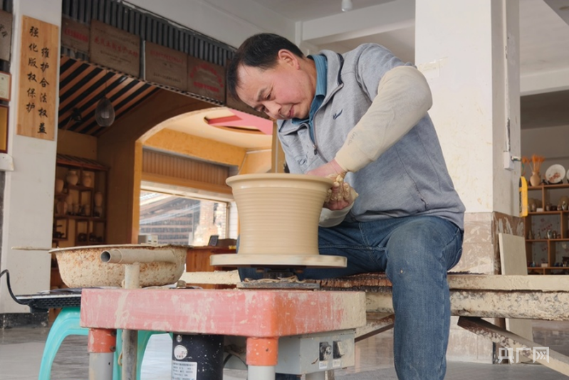 製作盬子雞的盬子,來自當地省級非物質文化遺產代表性傳承人母先才的陶藝館。2014年,在政府的幫扶下,母先才依託傳統技藝開設了陶藝館。現在,他不僅把原來的土窯改成了更加環保的電窯,還把工坊變為集製陶、研學、餐飲為一體的陶藝館,受到遊客歡迎。