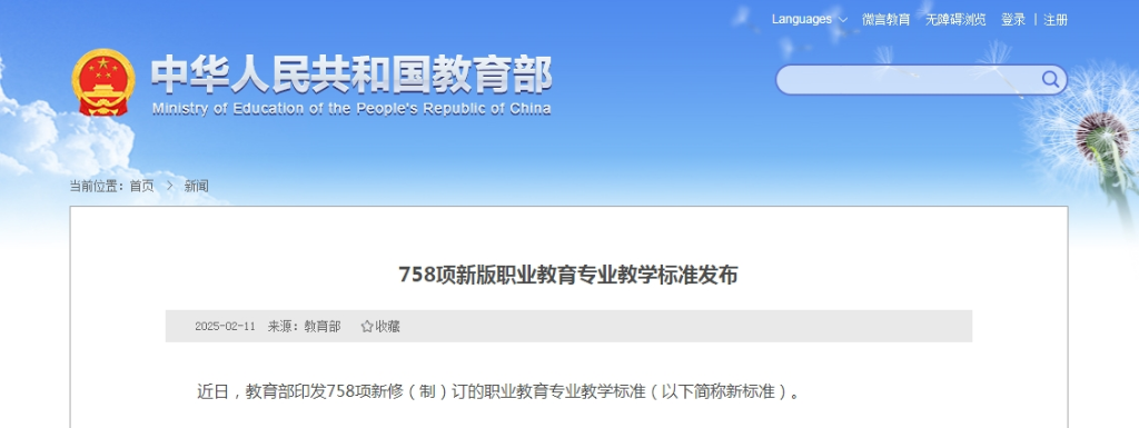 記者2月11日從教育部獲悉,教育部近日印發758項新修(制)訂的職業教育專業教學標準,覆蓋《職業教育專業目錄》1434個專業的52.9%,涉及19個專業大類、90個專業類。其中,中職標準223項,高職專科標準471項,職業本科標準64項。