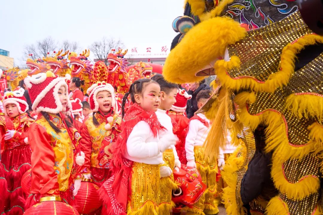 2月11日,山西省晉城市,表演舞獅的“小獅子”在與“大獅子”互動。人民網 張超寧 攝