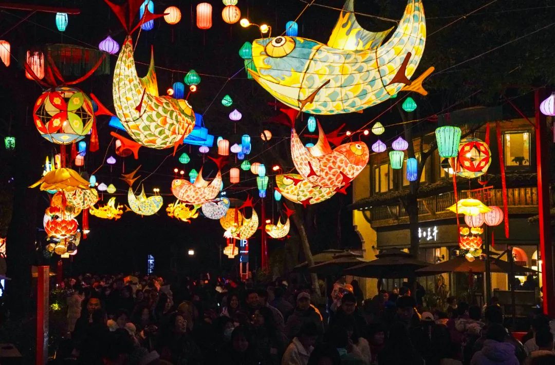 2月11日晚,浙江省杭州市西溪濕地元宵燈會遊人如織。人民網記者 郭揚 攝