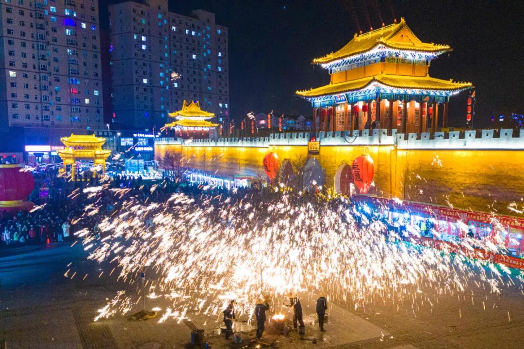 2月10日晚,山西省太原市清徐縣關帝城景區上演打鐵花。人民網記者 王帆 攝
