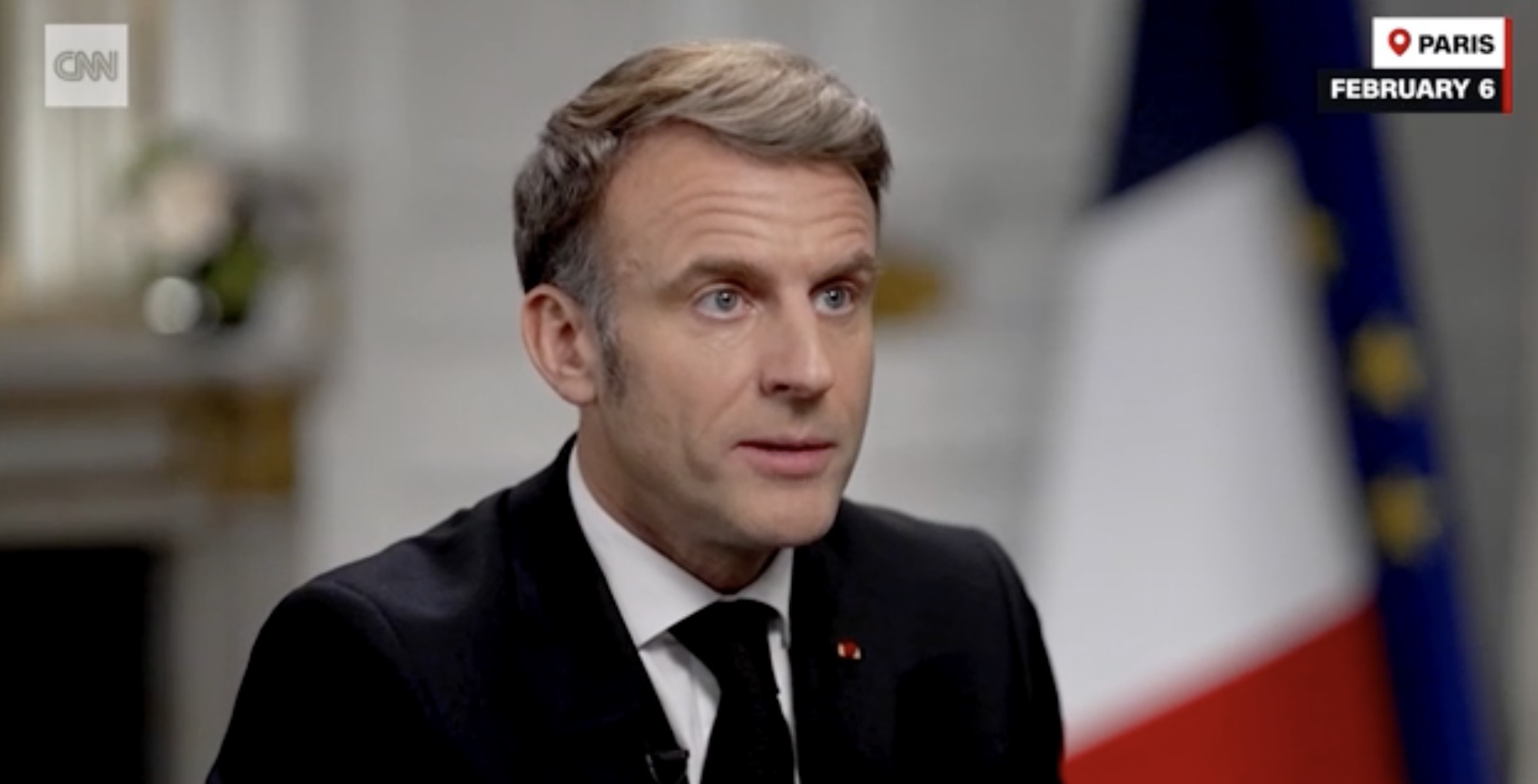 法國總統馬克龍2月6日在巴黎愛麗捨宮接受美媒專訪。圖源:美媒報道視頻截圖