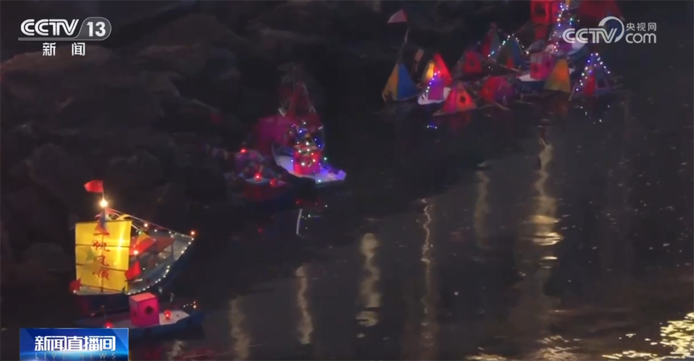 當日下午,放海燈活動在一場熱鬧喜慶的全民秧歌表演中拉開了帷幕。現場手工製作的近四百盞形態各異的精美船型海燈依次整齊排列,創意十足。如今,製作這些海燈的材料都是環保可降解的紙殼、木料等,融入了保護海洋生態的綠色理念。