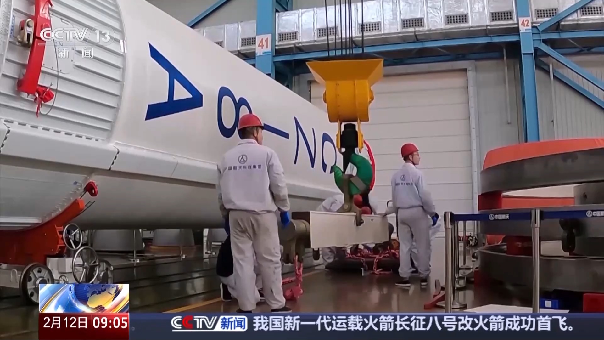 *中國航天科技集團 宋徵宇:*長征八號甲的末級,我們重新研製了3.35米直徑的通用氫氧末級。每台發動機的推力也進行了提升,使得在700公里太陽同步軌道的運載能力實現了兩噸級提升。