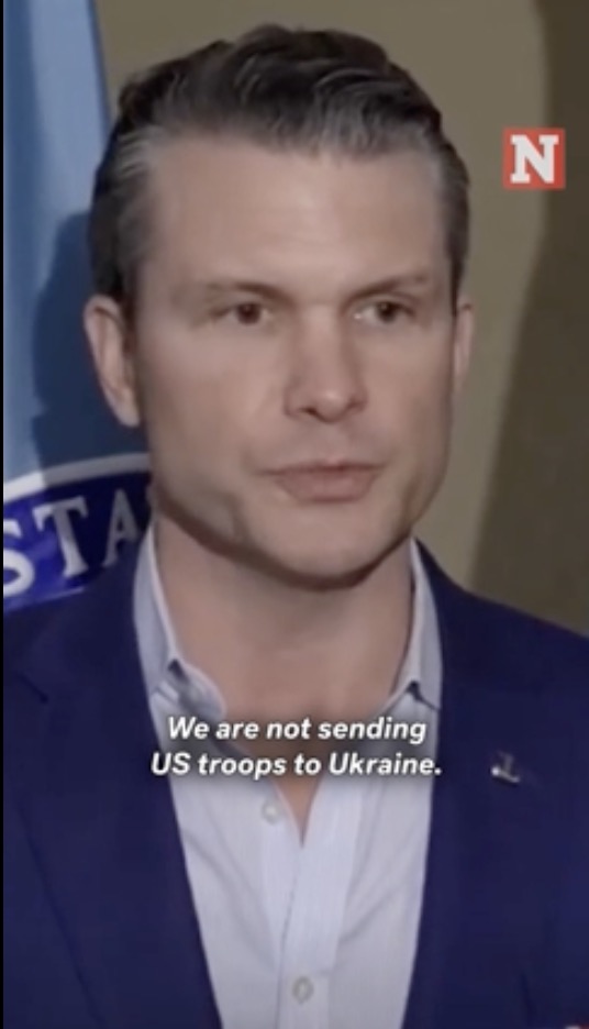 《新聞週刊》援引記者提問説:“拜登總統誓言不會向烏克蘭派遣美軍。你對派遣美軍到烏克蘭追蹤武器運輸持開放態度嗎?”赫格塞斯對此回應説,“我們不會向烏克蘭派遣軍隊”。赫格塞斯提到,美國總統特朗普期望俄烏迅速達成和平協議,並表示特朗普“致力於制定”俄烏和平協議。