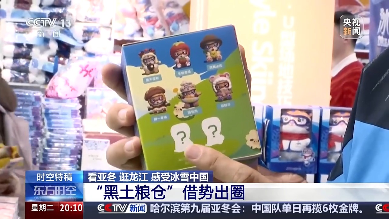 *總枱央視記者 鄭怡哲:*吃飽了,喝足了,我們再來逛逛今年的亞冬會紀念品商店。我們注意到,有一個東北美食主題系列盲盒,有黑不溜秋的凍梨、凍柿子、小雞燉蘑菇,還有紅腸、鍋包肉和雪糕。但是這裏,我們可以看到還有兩個隱藏款。
