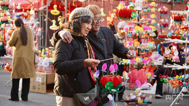 “每年元宵節前,我都會從揚州到南京來買燈,今天買了一個兔子燈和蓮花燈。與往年相比,今年花燈的品種更多了,造型也更好看了,特別有節日氛圍。”來自揚州的黃先生笑道。