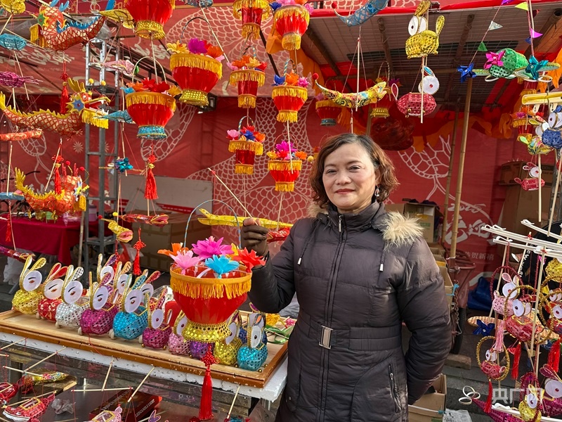 扎燈藝人陳英手提花籃燈(央廣網記者 顧煬威 攝)