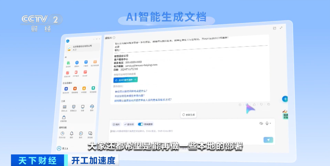 聯想百應總經理 魏東:開年我們和DeepSeek深度合作,首先開發出了基於DeepSeek(等技術)的一體機,政府、製造行業、醫療行業、教育行業等都在和我們溝通,大家還都希望能再做一些本地的部署。