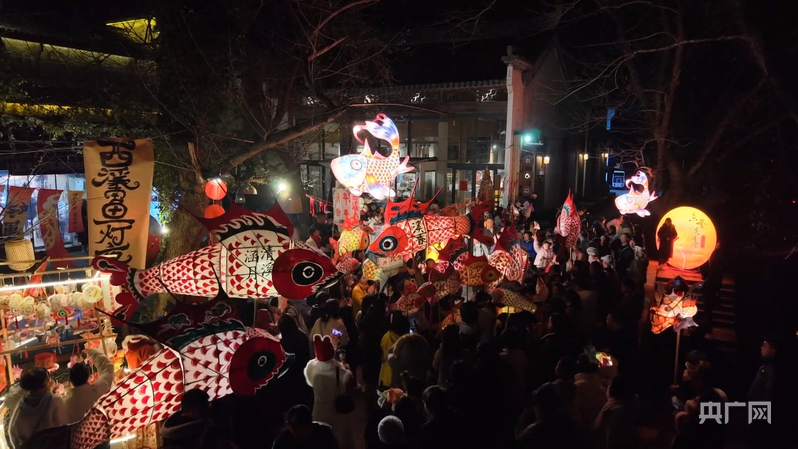 遊客陸楊:我第一次來這裏看魚燈,真的很震撼。我看到很多燈籠上寫着“風調雨順”,一下就觸動了我的內心,我也希望來年都能夠風調雨順。
