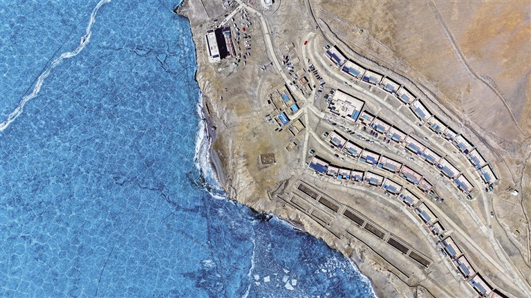 採訪結束後,記者與倫珠曲珍一同走出家門。初春的陽光灑在普莫雍措厚實的冰面上,反射出耀眼的光芒。湖畔的村中小路上,村民們三五成羣,有説有笑地朝着第二屆普莫雍措“藍冰之約”的開幕現場走去,準備觀看演出。“在家能吸氧,出門就能看演出,現在的生活真是太幸福了!”倫珠曲珍臉上洋溢着幸福的笑容。