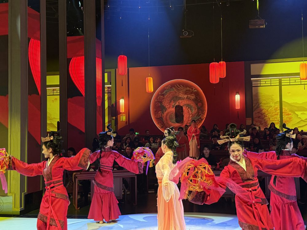 一邊沉浸式觀賞戲劇,一邊品嚐特色美食,元宵節當晚,位於重慶渝中的互動沉浸式餐廳龍鳳呈祥·禧筵餐廳熱鬧非凡。來自浙江的遊客楊女士和家人早早定下了元宵節的位置,“我從網絡平台看到這種沉浸式餐廳模式,感覺很特別。”